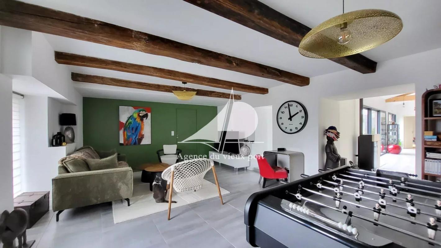 A 900 mètres du bourg et de la plage, maison d’environ 187 m2 entièrement rénovée en 2022. Elle offre à la fois le charme de l’ancien et le confort moderne.