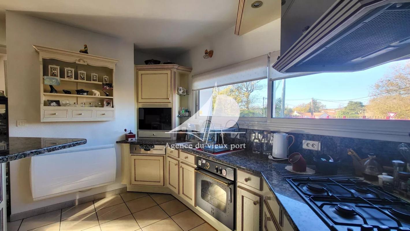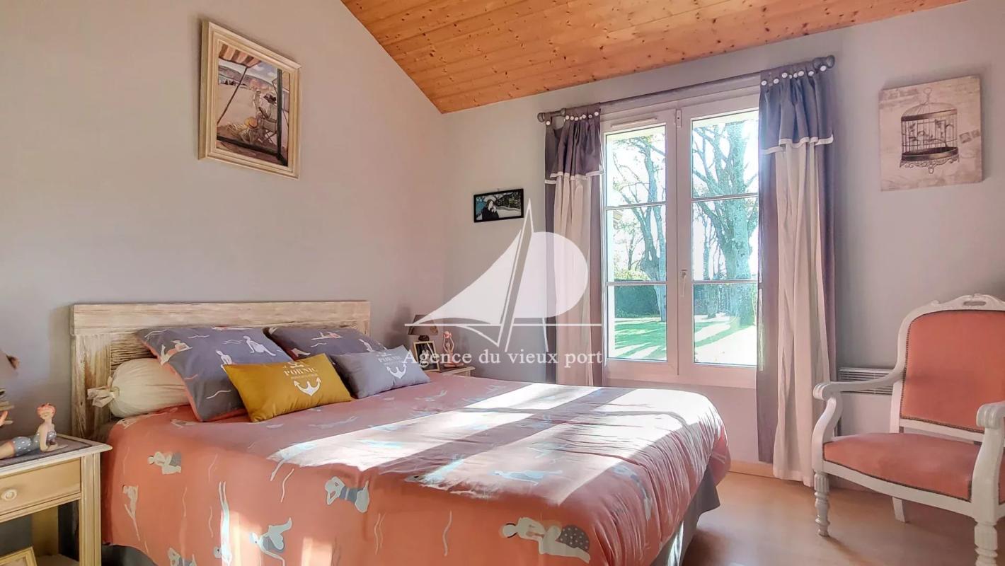 située à l’entrée de Pornic, sur terrain clos et arboré d’environ 1630 m2, jolie maison d’environ 144 m2 aux prestations de qualité comprenant : entrée, grand séjour cathédrale avec mezzanine, véranda, cuisine aménagée et équipée, buanderie, suite parentale (chambre, placard, salle de bains avec wc,), dégagement, deux chambres avec placards, salle d’eau, wc séparé.