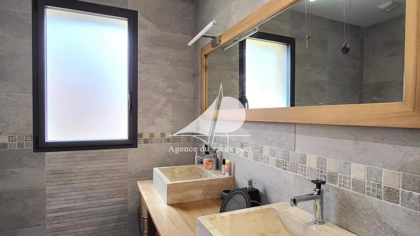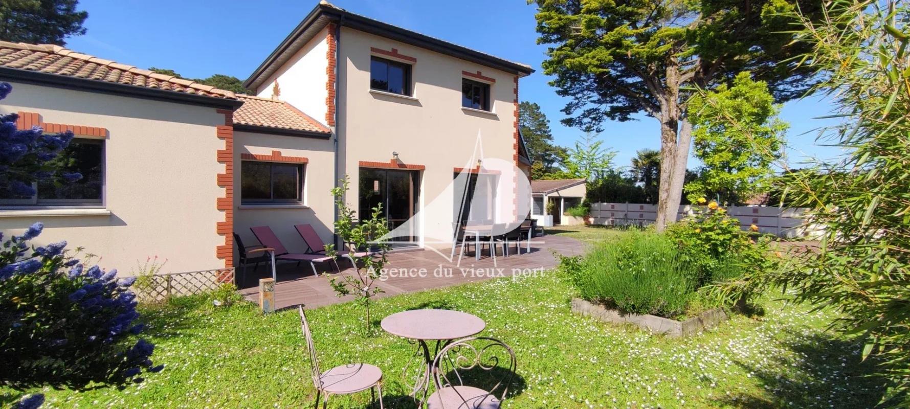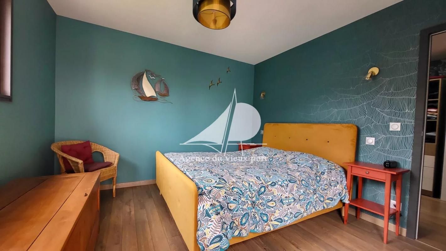 Agence du Vieux Port Pornic, à vendre : dans le quartier très recherché de la Noéveillard, découvrez cette maison récente et confortable d’environ 140 m2 habitables, édifiée sur une parcelle close et arborée d’environ 1112 m2, au calme, en second rideau. Elle comprend de plain-pied: une entrée, une cuisine aménagée et et équipée, un salon-séjour avec poêle à bois, accès direct à une terrasse et un jardin exposés plein SUD. Vous disposerez également d’une suite parentale avec salle d’eau et dressing, un WC indépendant, une buanderie, une arrière cuisine.