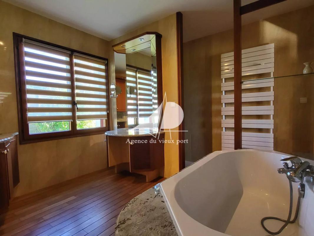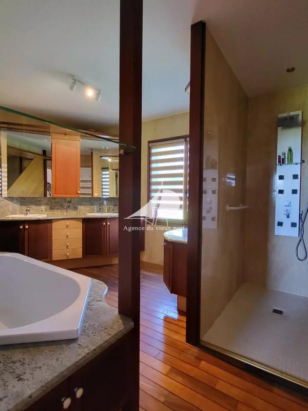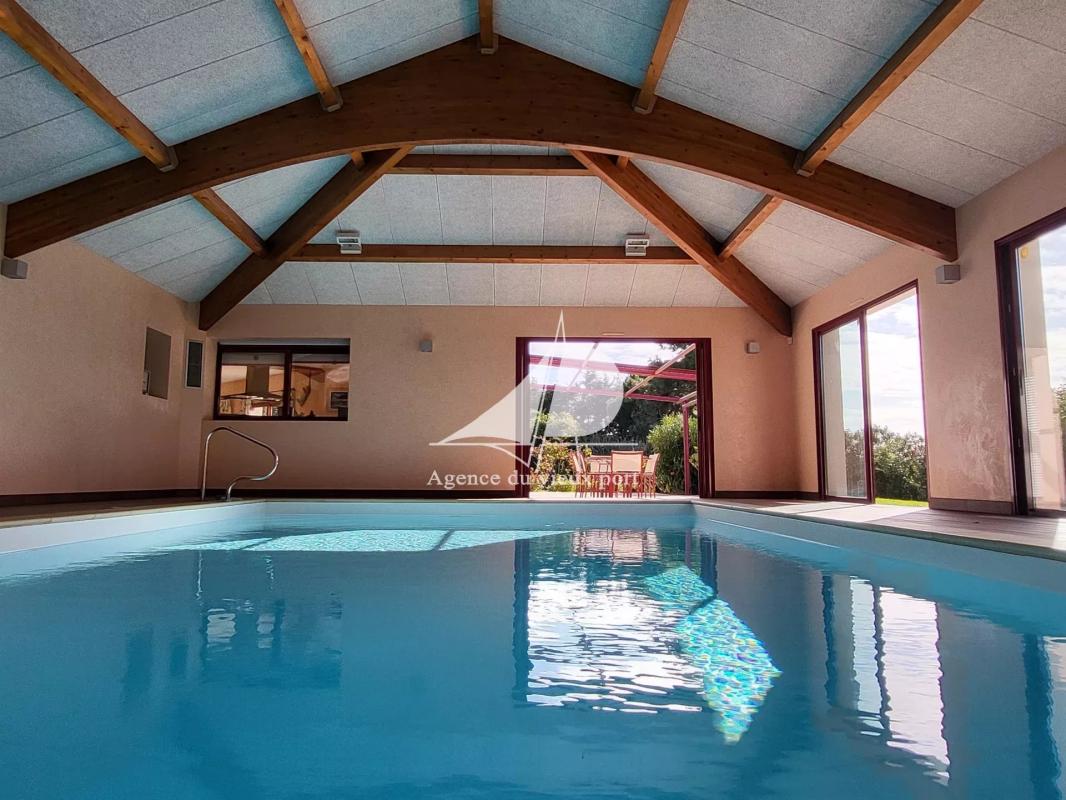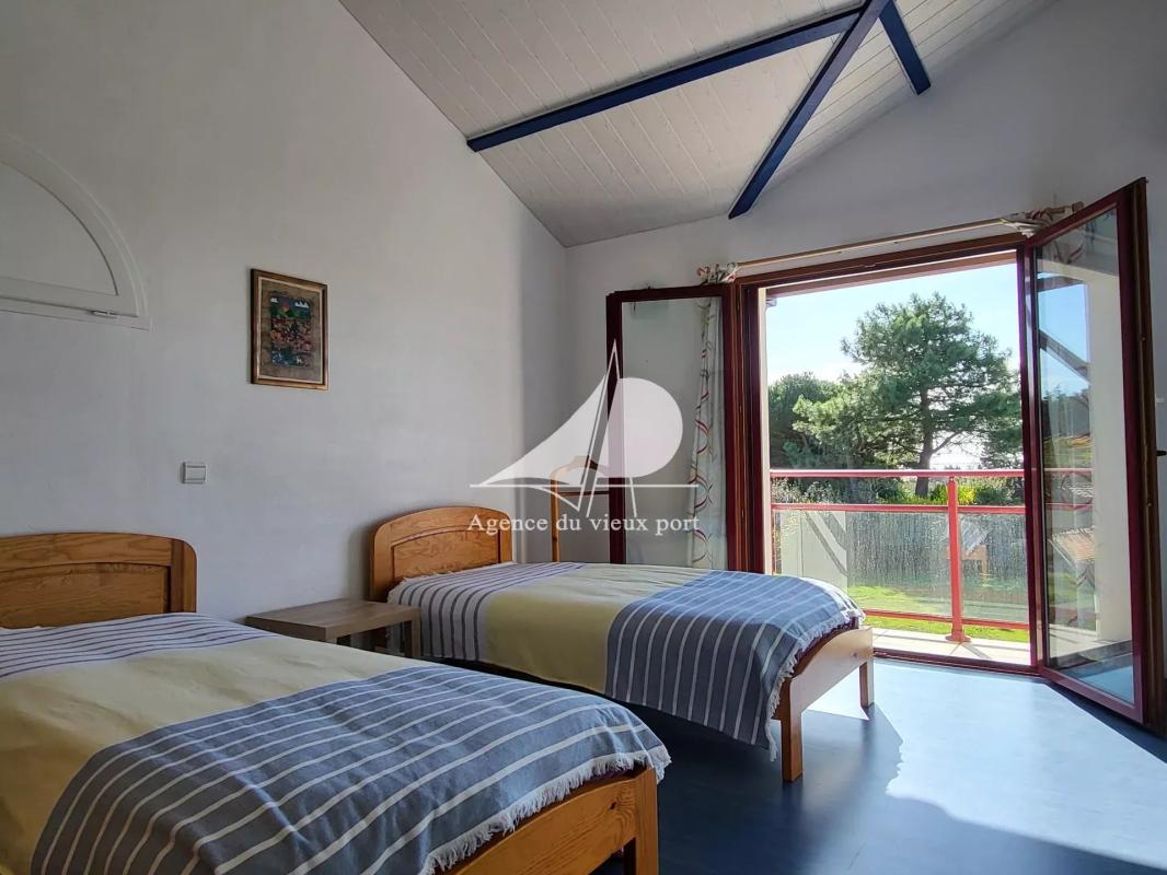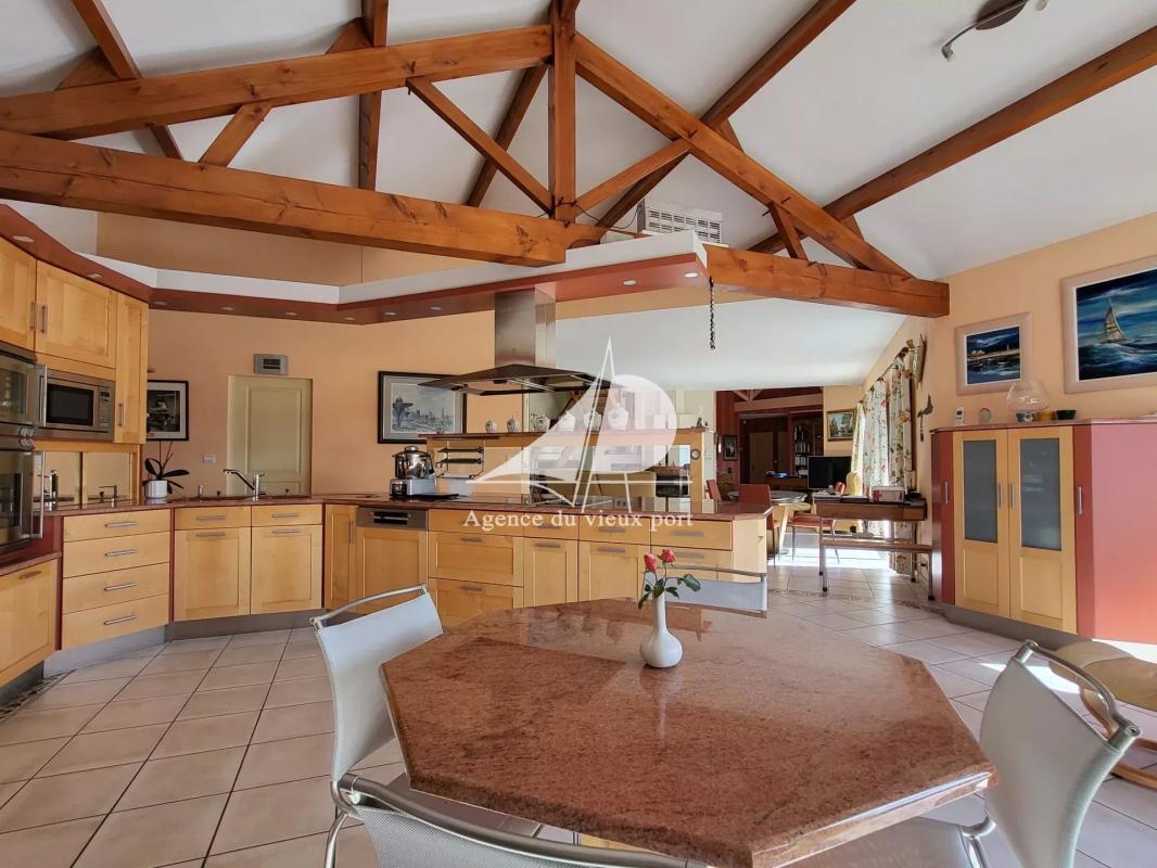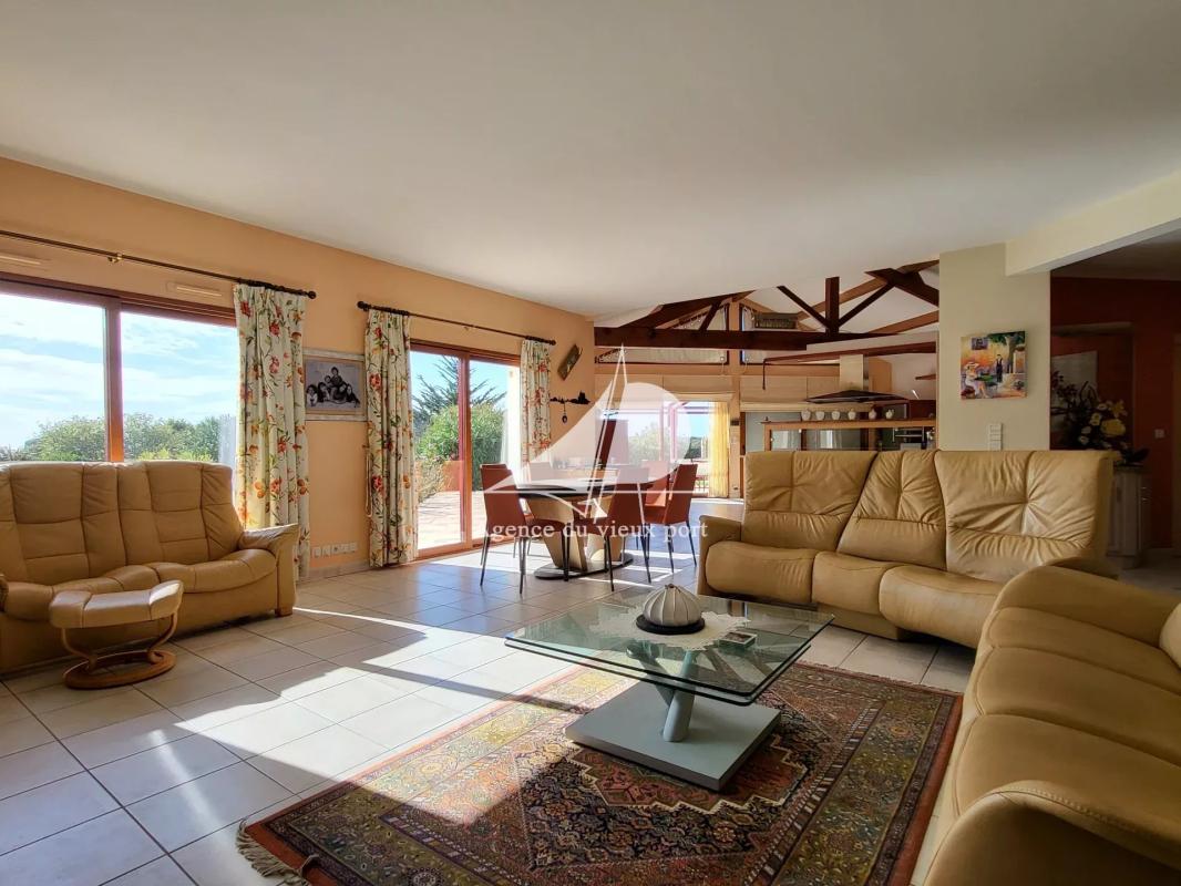 Maison d’architecte d’environ 205 m² située dans un cadre privilégié à seulement 650 m de la plage. Au rez-de-chaussée : entrée, WC, un espace à vivre de plus de 100 m2 : salon avec cheminée insert, bureau, cuisine équipée, repas, l’ensemble ouvert sur terrasses bénéficiant d’une vue dégagée sur la mer et sans vis à vis pour vous offrir une tranquillité absolue. La partie nuit se compose de deux chambres, d’une salle de bains avec douche et baignoire, WC. Pour compléter : une buanderie, un garage et une cave enterrée. A l’étage : palier, deux belles chambres avec balcon Vue Mer, une salle d’eau avec WC. Un bâtiment de plus de 100 m2 abrite une piscine chauffée dont vous pourrez profiter tout au long de l’année. Parcelle close d’environ 2400 m2. Prix FAI 1 552 500 € dont 3,5% TTC d’honoraires charge acquéreur. Les informations sur les risques auxquels ce bien est exposé sont disponibles sur le site Géorisques. https://www.georisques.gouv.fr